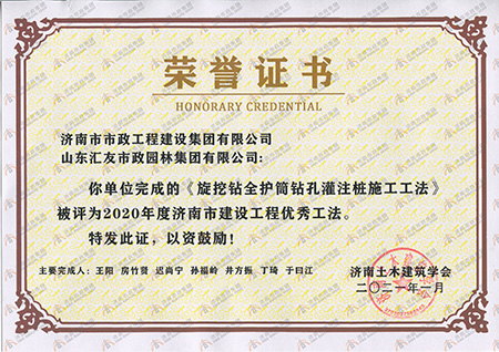 2020年度济南市建设工程优秀工法《旋挖钻全护筒钻孔灌注桩施工工法》