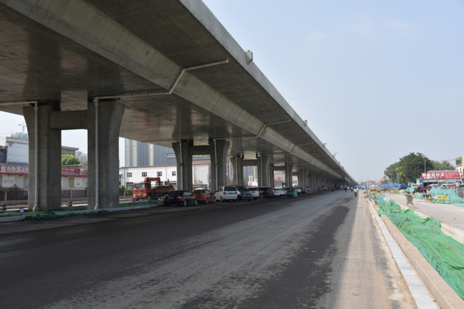 9月8日上午6点,伴随着最后一块围挡的拆除,济南快速路工程地面道路两侧快车道率先全部开放交通,这将大大缓解周边交通拥堵情况。目前,地面道路快慢车道中粒式沥青面层全部摊铺完成,道路两侧立沿石安装完成90%,人行道花砖铺装完成85%,高架桥桥面中粒式面层AC-13也已全部完成,9月12日完成高架桥AC-10沥青面层。项目部严把质量关,放开交通后仍加大现场安全文明施工力度,在后期收尾施工中加强细节处理,给业主交出满意答卷。