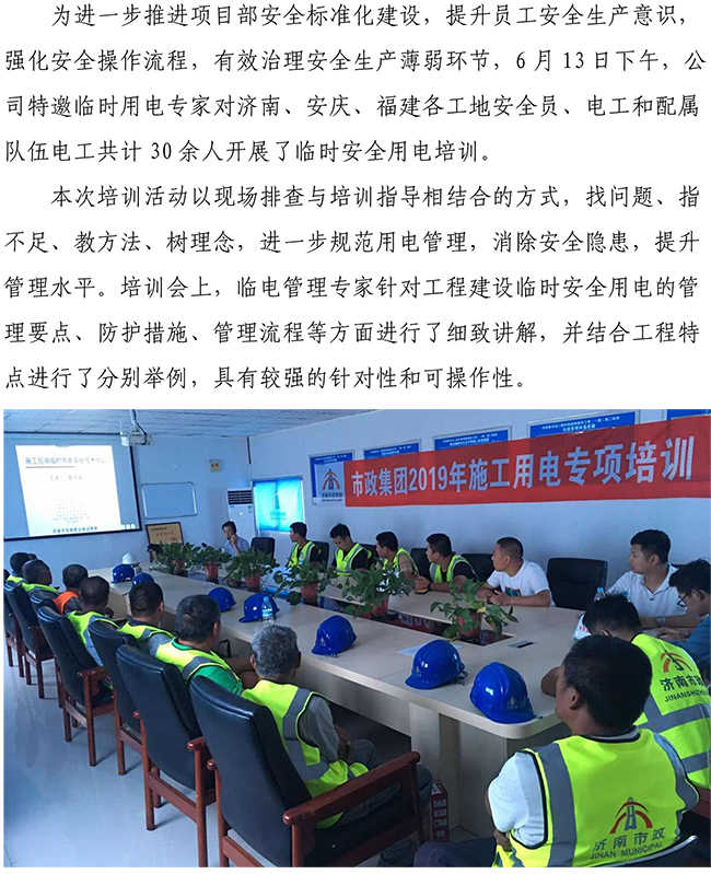 济南市政集团组织开展临时用电安全培训