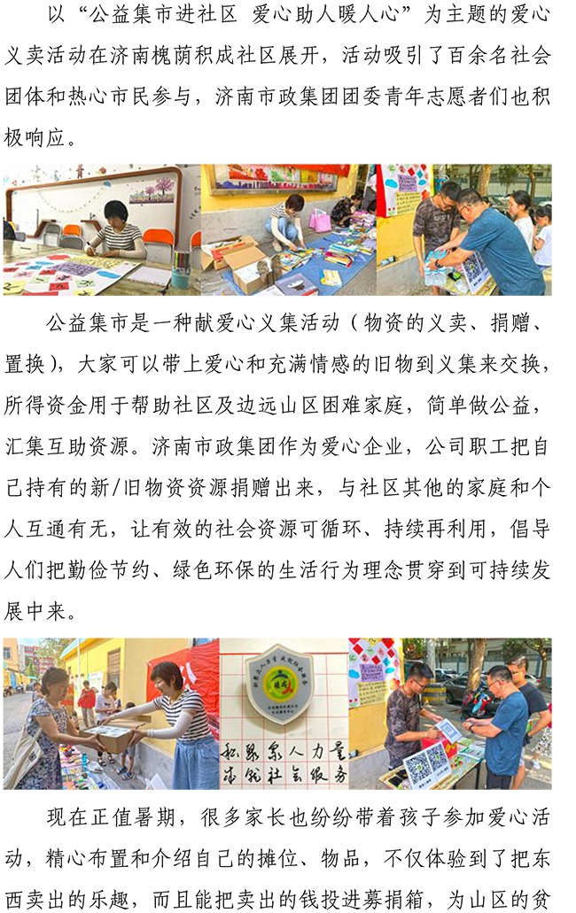 公益集市进社区 爱心助人暖人心——济南市政集团团委献爱心活动