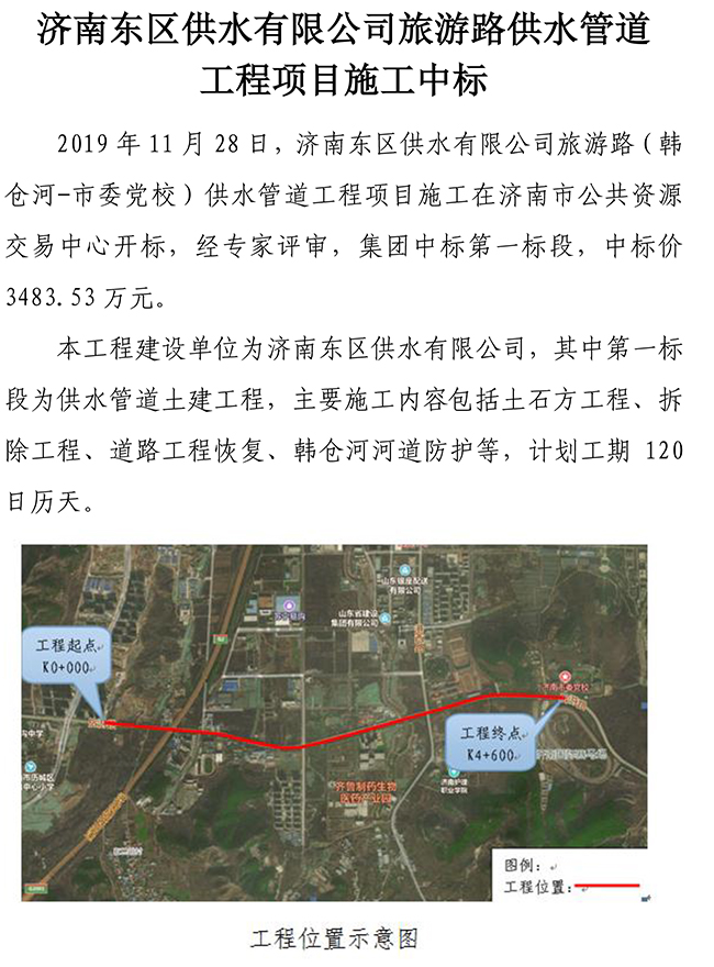 济南东区供水有限公司旅游路供水管道工程项目施工中标
