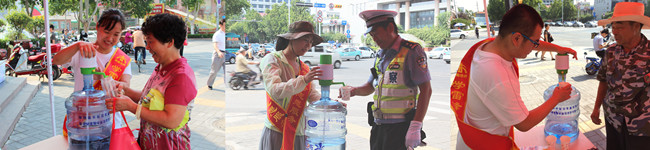 活动当天,最高气温高达40度,志愿者们顶着炎炎烈日,为过往市民提供饮用水、打气筒、雨伞、扳子、钳子、螺丝刀、藿香正气水、速效救心丸、酒精药棉等一系列救急便民措施,连续服务了近7个小时,虽然汗流浃背,但依然面带微笑,为市民提供喝水乘凉便民服务,带去阵阵清凉。当市民了解到是济南市政志愿者的时候,纷纷询问起公司承建的重点工程项目,对公司的工程形象、进度、质量和安全文明施工称赞不已,对公司志愿者积极投身到创城、社会公益事业等活动中大加赞扬。
